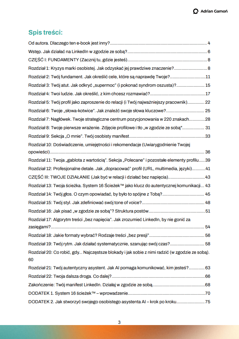 Przewodnik, który pomaga działać na LinkedIn bez presji i udawania. Odkryj 16 Ścieżek™, zbuduj autentyczną markę i stwórz plan działania w zgodzie ze sobą. W pakiecie: e-book, Kanwa Strategii, system 16 Ścieżek™ i instrukcja tworzenia osobistego asystenta AI.